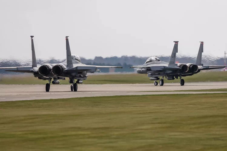 F-15E Strike Eagles Of The US Air Force Line Up For Takeoff