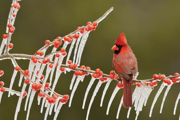 Northern Cardinal male eating Elbow bush berries, Hill Country, Texas, USARolf Nussbaumer