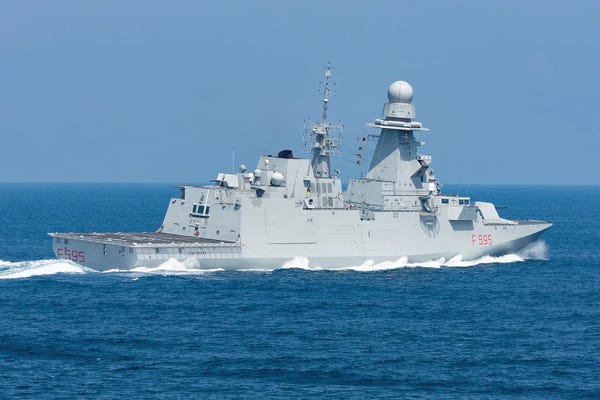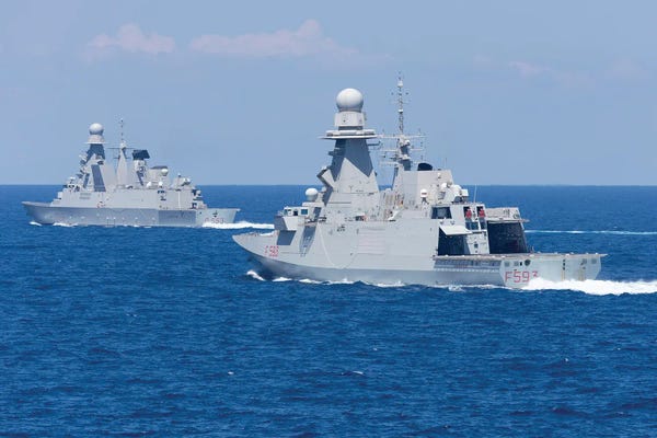 Italian Navy Frigate Carabiniere Underway With Ddg Andrea Doria