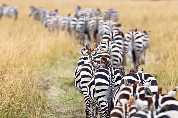 Line Of Migrating Zebra Walking Down A Path