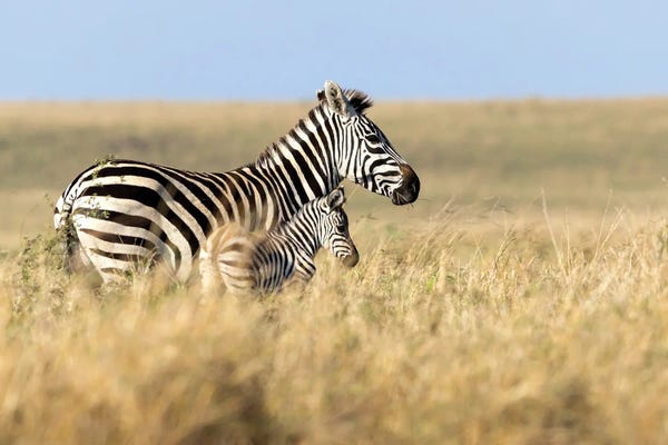 Mother And Baby Zebra Walking Through Grasslands Of Africa