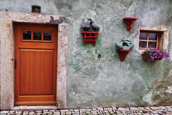 Weathered Wall With Wood Door