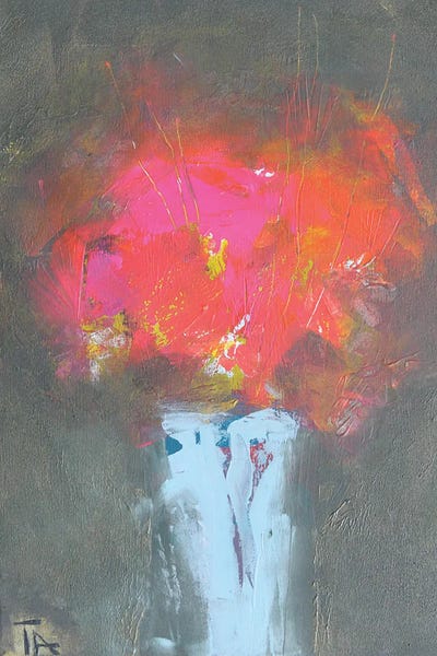 Abstract Flowers In A Red Pot