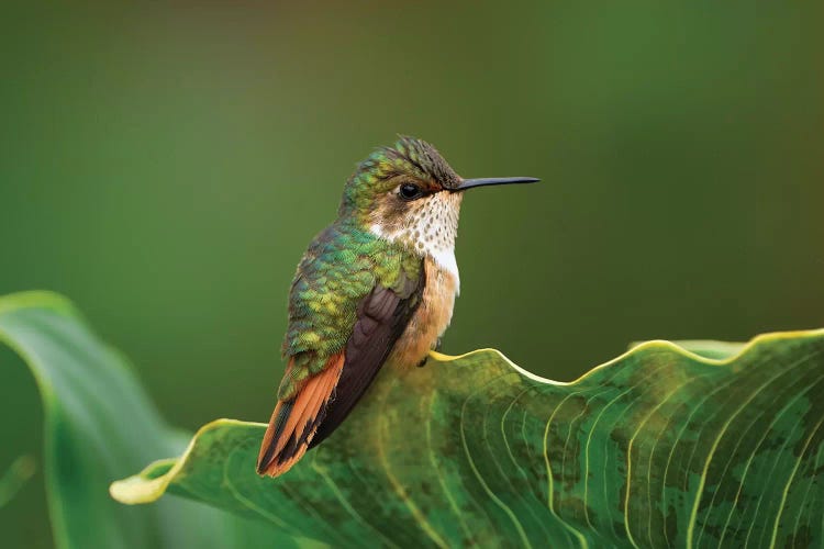 Green Violet-Ear Hummingbird Perched On Leaf, Costa Rica