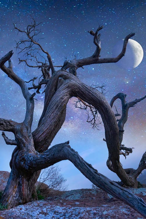 Ancient Pine At Night, Mount Scott, Wichita Mountains Nwf Oklahoma, CompositeTim Fitzharris