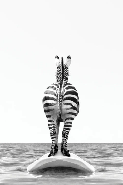 Zebra With Surfboard Black And White