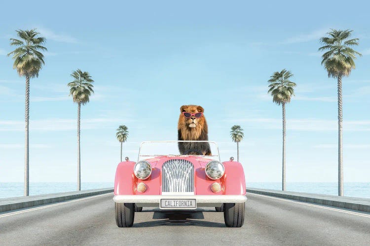 Vintage Pink Car With Lion