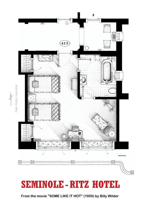 Floorplan of hotel room from the movie SOME LIKE IT HOT