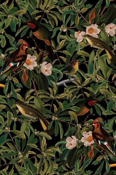 Mystical Midnight Bird And Flower Jungle