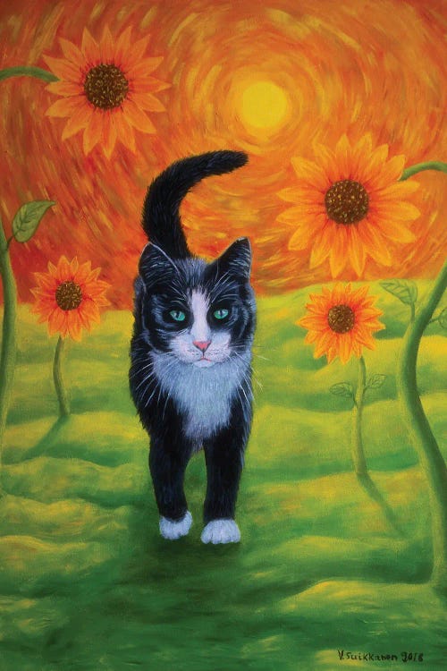 Cat And Sunflowers II
