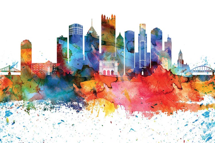 Pittsburgh Colorful Watercolor Skyline