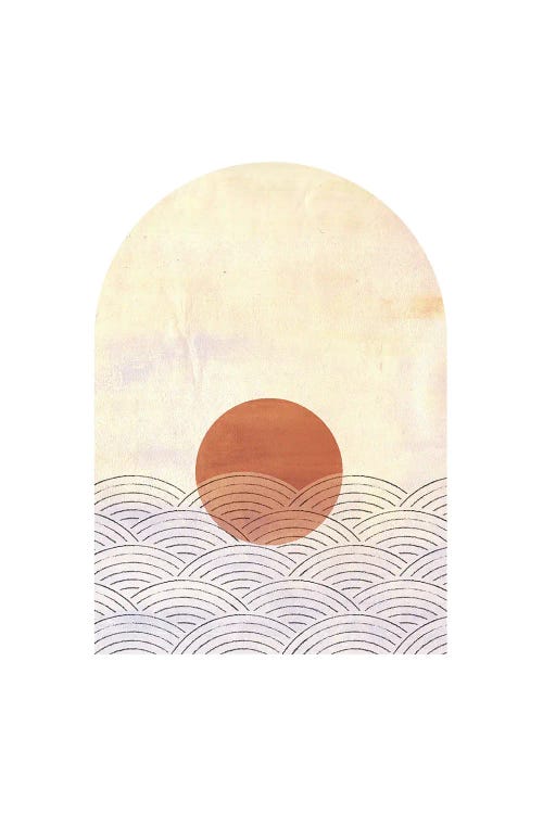 Dusty Pink Sun And Line-Art Sea
