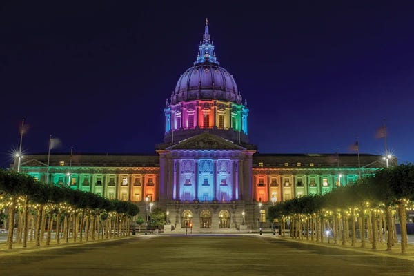 San Francisco City Hall Illuminated In Rainbow Colors For The Pride Parade
