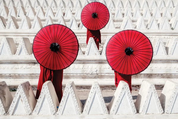 Three Novices With Red Umbrellas