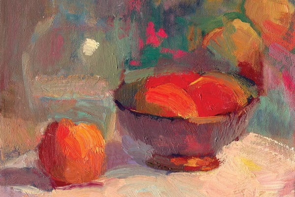 Peaches In Silver Bowl
