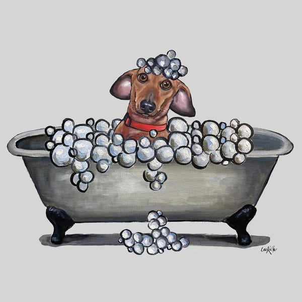 Dogs In Tubs Series, Dachshund In Bathtub, Wash Your Weinie