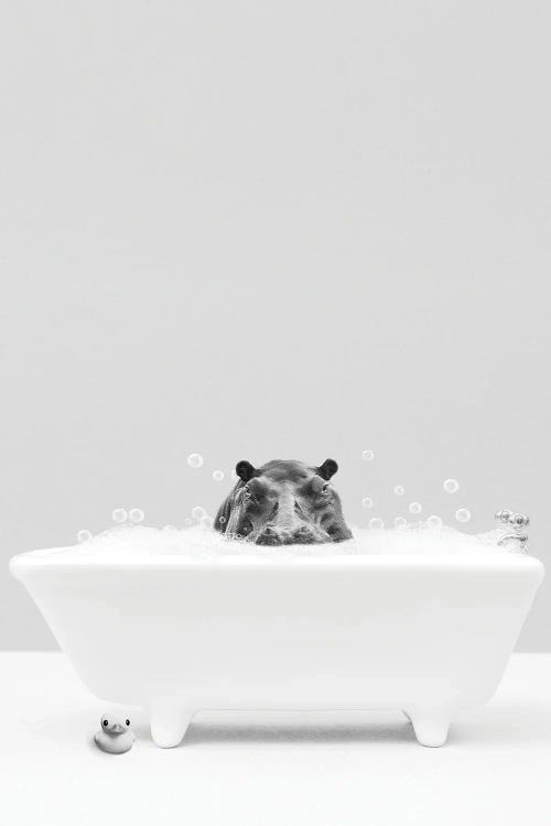 Elephant In Tub Black And White