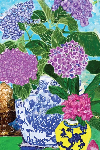 Hydrangeas In Chinoiserie Jars