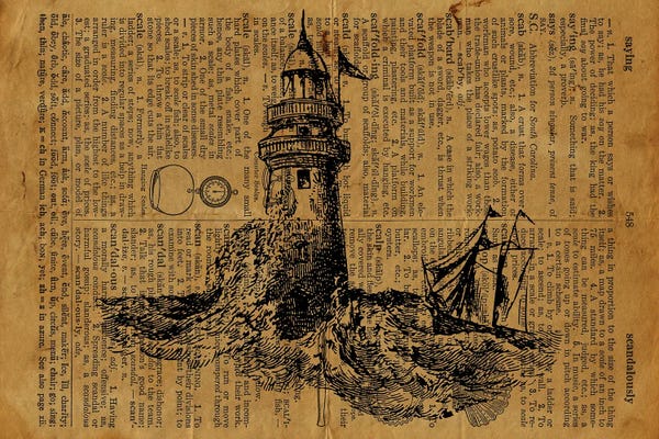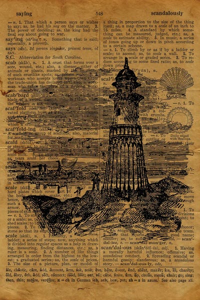 Lighthouse Etching On Old Paper