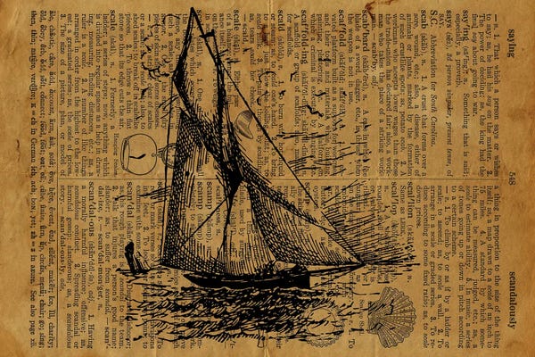 Sail Boat Etching On Old Paper