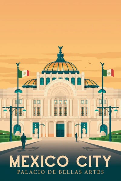 Mexico City Palacio De Bellas Artes Travel Illustration