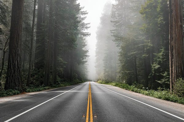 Scenic Route In The Redwood National Forest In California, Usa