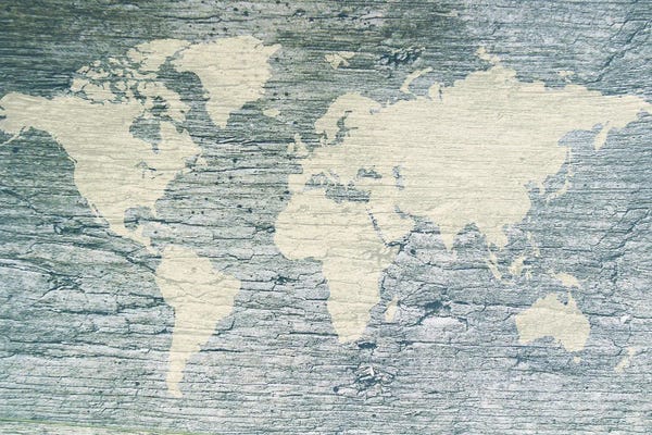 Vintage White World Map Flag