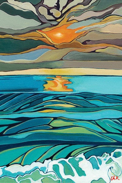 Orange Setting Sun Over Rolling Waves