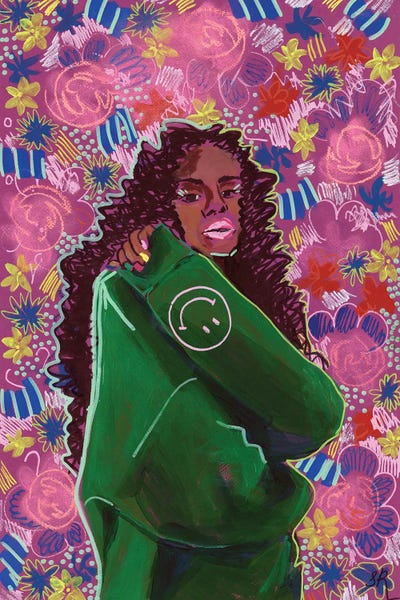 Floral Girl On Green Background
