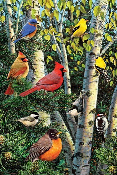Birds In Birch & Pines