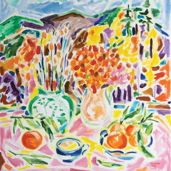 Still Life With Flowers and Striped Tablecloth