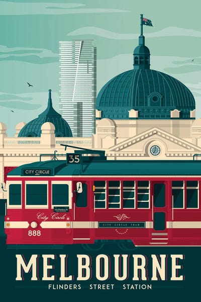 Melbourne Findler Street Station Australia Travel IllustrationOlahoop Travel Posters