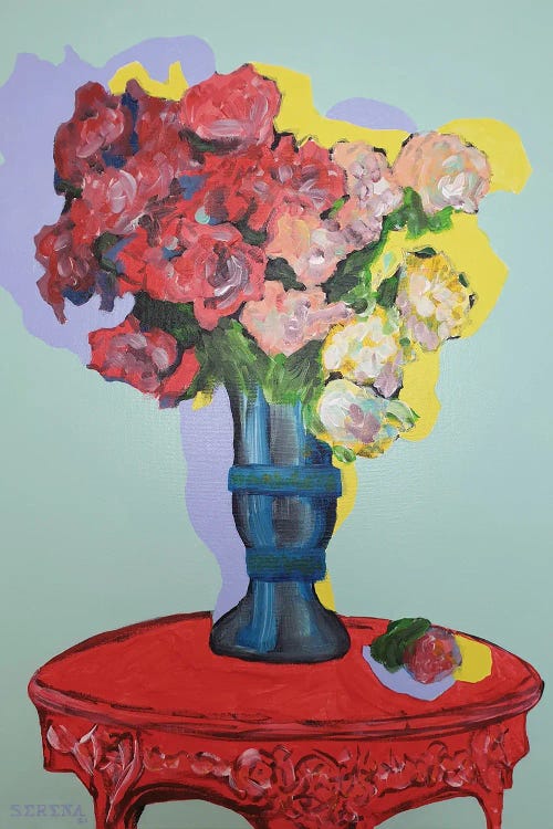 Flower Vase On Red Table
