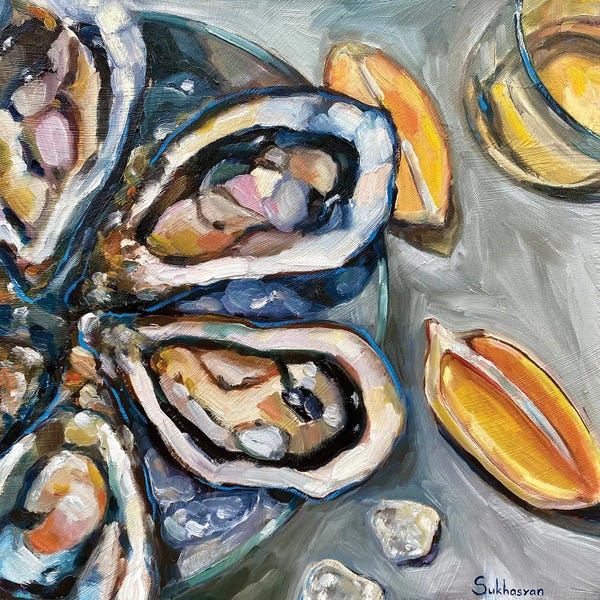 Still Life With Wine, Oysters And Lemons II