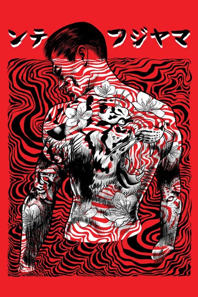 Japanese With Tattooed Back With Tiger