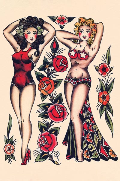 Two Beautiful Women, Vintage Tatooo Flash by Norman Collins, aka, Sailor Jerry
