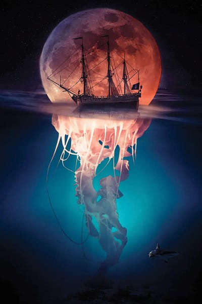 Pirate Jellyfish And Red Moon