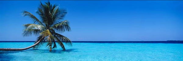 Tropical Seascape With A Lone Palm Tree, Republic Of MaldivesPanoramic Images