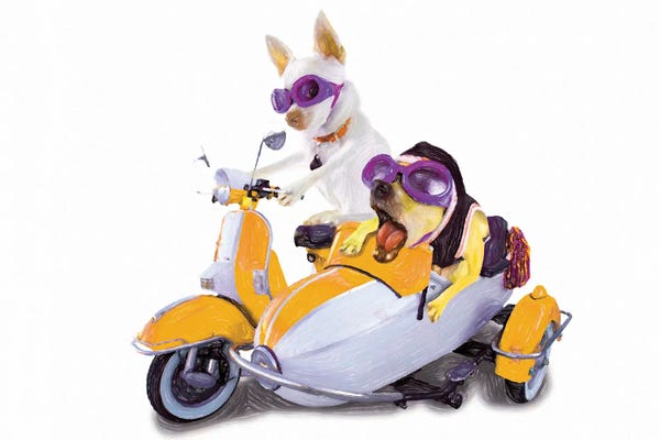Dogs In Sidecar Watercolor