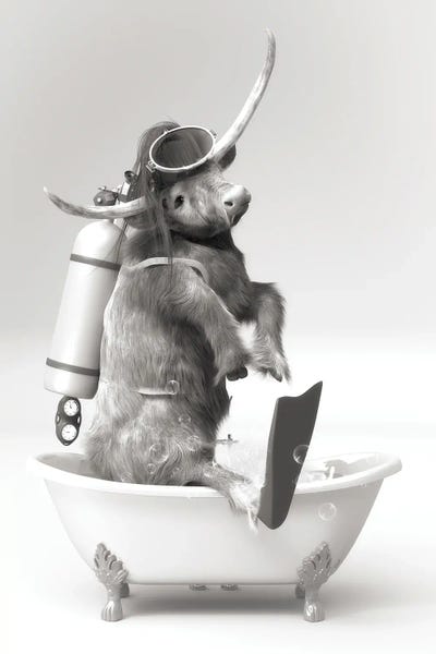 Highland Cow In The Bath Doing Underwater Diving