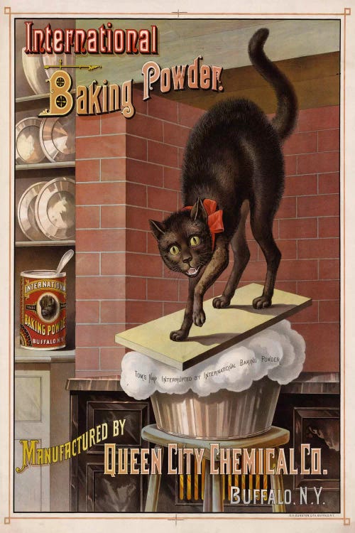 Advertisement For International Brand Baking Powder, Showing A Cat Awakened By Bread Rising