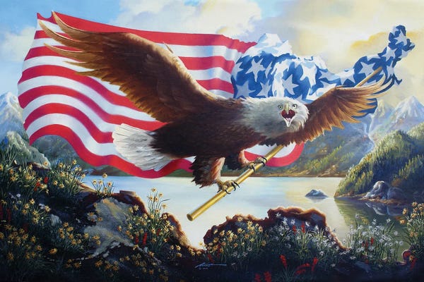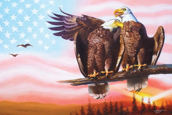 Two Eagles With American Flag
