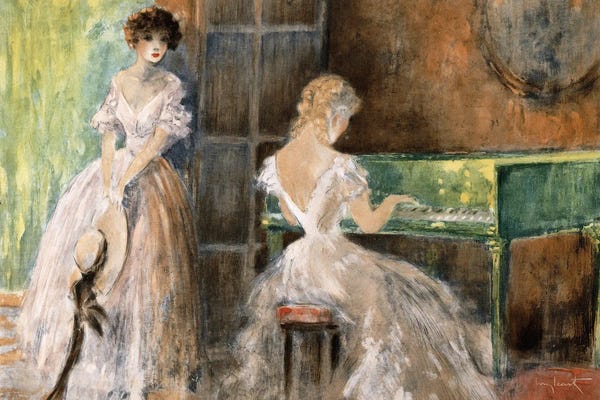 Secret Kiss, illustration for 'Fetes Galantes' by Paul Verlaine