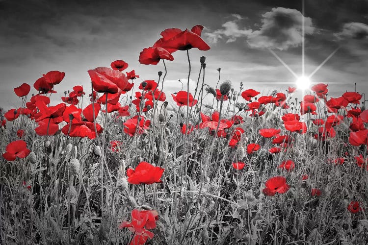 Idyllic Field Of Poppies With Sun | Panorama