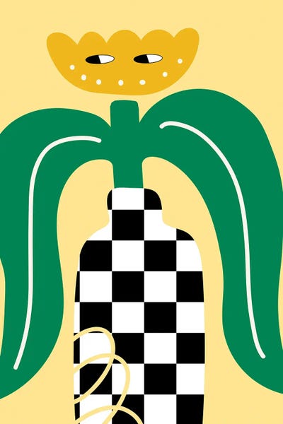 Yellow Flower In Checkboard Vase