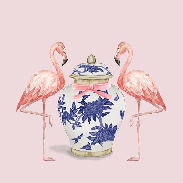 Staffordshire Dogs Chinoiserie With Ginger Jars On Blue StripesGreen Orchid Boutique