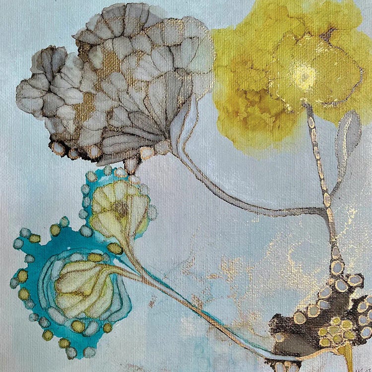Abstract Botanical In Teal And Amber I