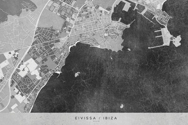 Gray Vintage Map Of Ibiza