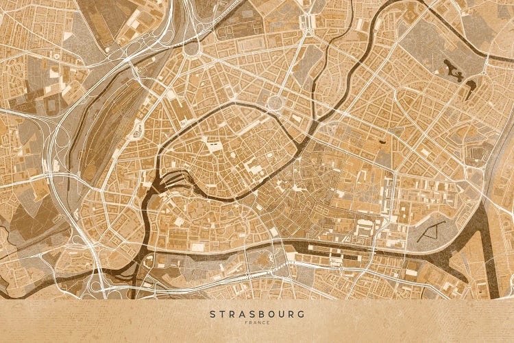 Sepia Vintage Map Of Strasbourg Downtown (France)