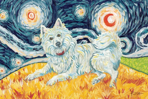 American Eskimo Dog On A Starry Night